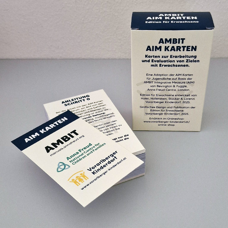 Die AIM-Karten basieren auf der Adolescent Integrative Measure und wurden ursprünglich am Anna Freud Centre in London entwickelt. Sie wurden nun von Beate Huter und Michael Hollenstein adaptiert und auf Deutsch übersetzt. Die Karten für Erwachsene/Eltern wurden neu von Huter, Hollenstein, Stocker und Lorenzi entwickelt und enthalten zusätzliche, für Erwachsene relevante Themen.